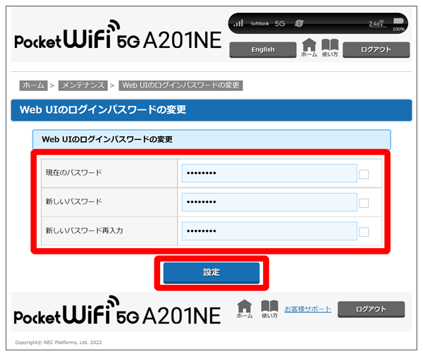 本パスワードは、Web UIの各種設定をするために設定画面へログインするときに必要です。