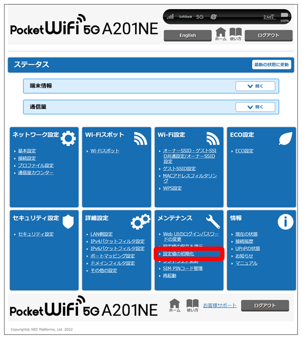 - 初期化をしてもお客様が設定したUSIMカードのPINコードは変更されません。