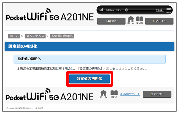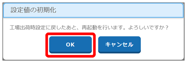 - 設定値を初期化すると、今までに設定した内容は消去されます。設定内容を復元したい場合は、「設定値の保存&復元」で現在の設定内容を保存し、初期化後に復元してください。