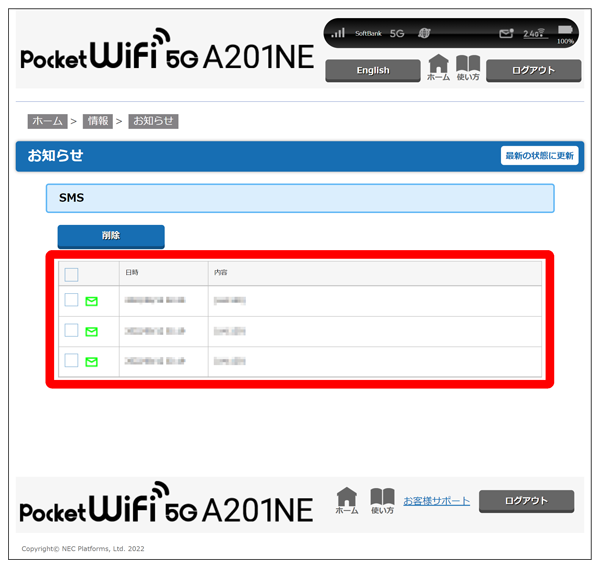 | 既読/未読 | お知らせの既読/未読を表示します。 |