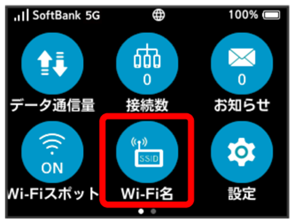 Wi-Fi名(SSID)とパスワード(セキュリティキー)が表示されます。