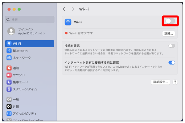 Macの無線LAN機能がONになります。