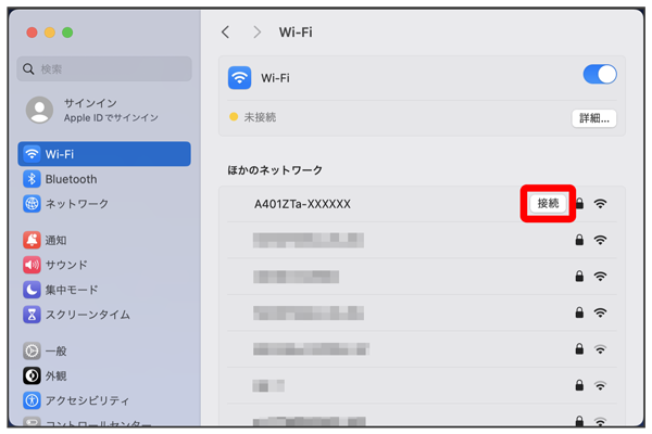 - 本機のWi-Fi名(SSID)が表示されていない場合は、