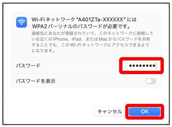 本機のパスワード(セキュリティキー)を入力