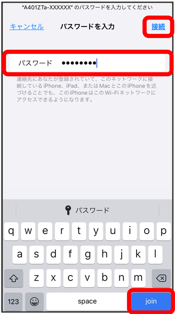 本機のパスワード(セキュリティキー)を入力または