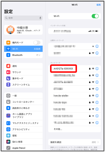 - iPadの画面にWi-Fiの電波アイコンが表示されていることを確認してください。