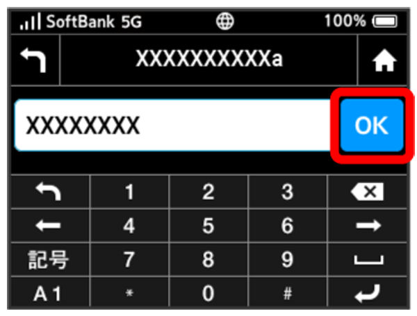 0~9、a~z、A~Z、半角記号(! # ( ) + - . / % = ? @ ^ _ { | } ~ * $ [ ] & : < > ' `)、スペースが利用できます。 - パスワード(セキュリティキー): セキュリティの種類によって異なります。