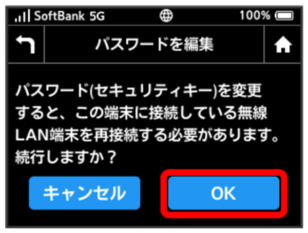 入力したWi-Fi名(SSID)とパスワード(セキュリティキー)が設定されます。