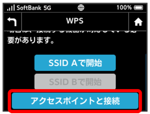 WPS機能対応のアクセスポイントと接続します。