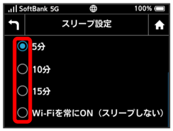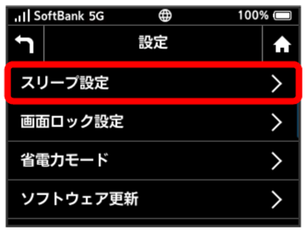 - スリープ設定をに設定した場合、電池が消費され待受時間が短くなります。