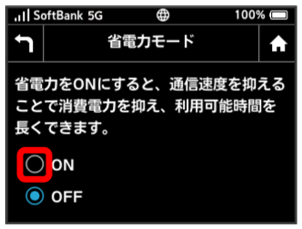 - 省電力モードをにすると、モバイルネットワーク、Wi-Fiの通信速度が抑えられ、下り最大約2Mbpsまで制限されます。