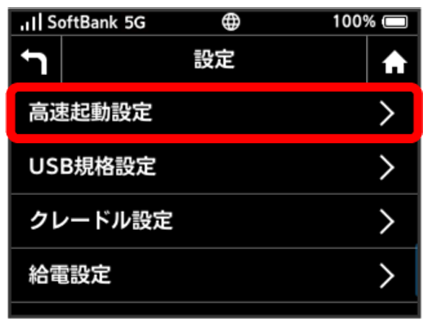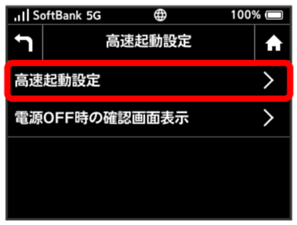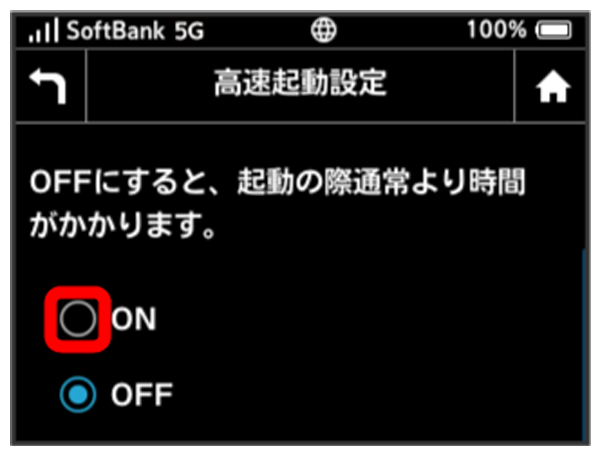 高速起動をONにすることで、電源ON時の時間を短縮することができます。