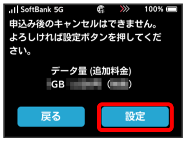 低速化を解除するデータ通信量をタップ