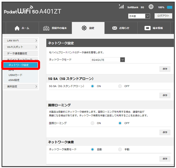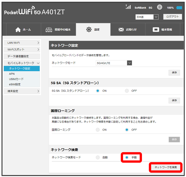 モバイルネットワークを検索する