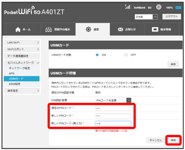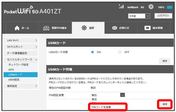 PINコードは、必要に応じて4~8桁のお好きな番号に変更できます。PINコードの変更は、PIN認証が有効に設定されているときにできます。