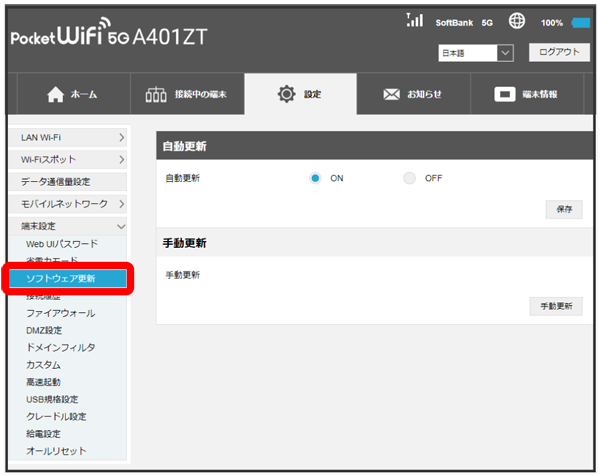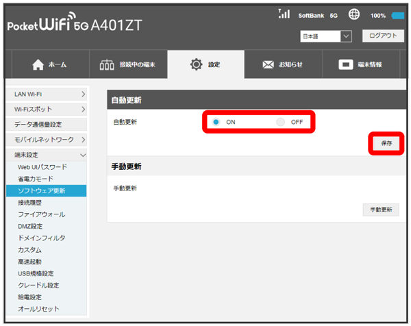ソフトウェア自動更新機能のON/OFFが切り替わります。