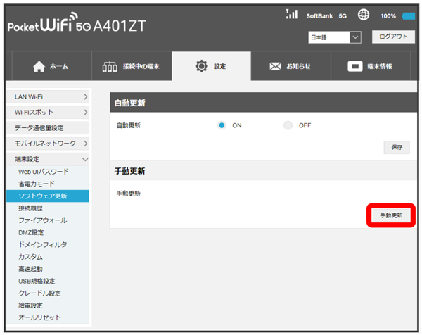 最新のソフトウェアを確認します。最新のソフトウェアがある場合はソフトウェアが更新されます。