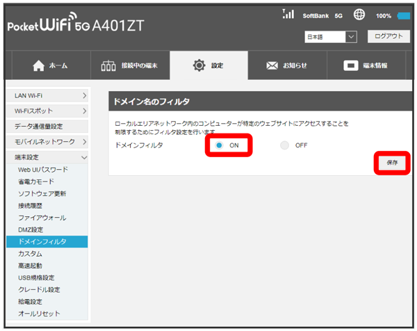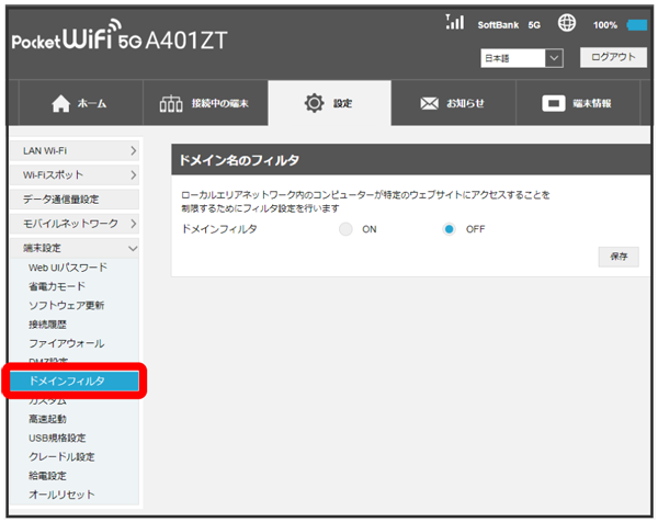 - お買い上げ時のドメインフィルタはOFFに設定されています。