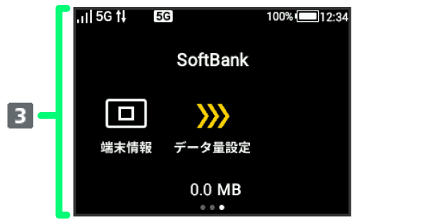 | データ通信量 | ご利用開始もしくはリセットしてから現在までのデータ通信量を表示します。 |
