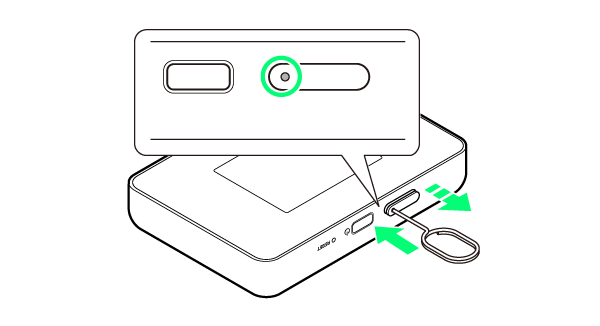 - SIMカードトレイが飛び出すまで、しっかりとまっすぐ差し込んでください。