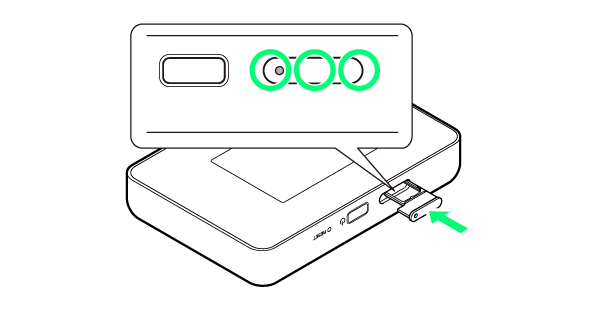 SIMカード挿入口に、SIMカードトレイを差し込む