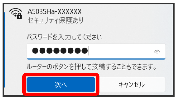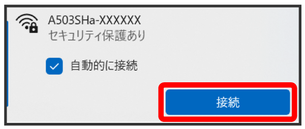 - 上記画面から設定できない場合は、スタートメニューを右クリックと操作してネットワーク名(SSID)一覧を表示し、以降はWindowsのヘルプを参照して設定してください。