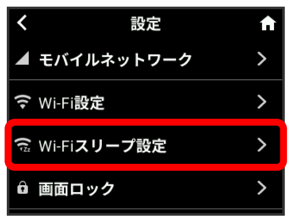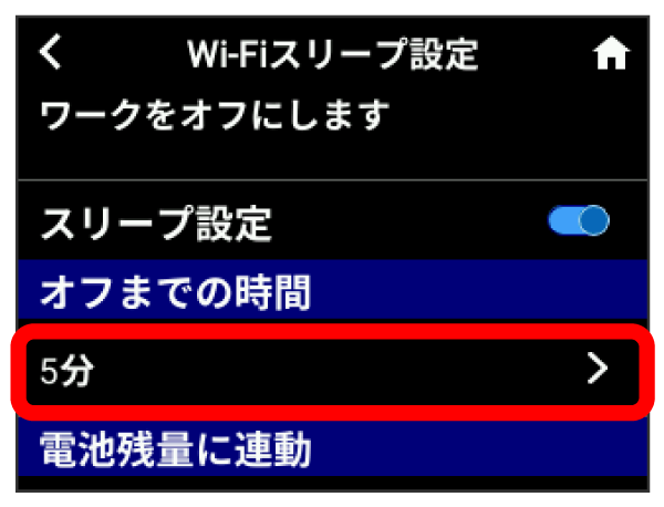 スリープモードとは、Wi-Fi対応機器が接続されていない状態で一定時間操作がなかった場合、Wi-Fi機能を自動的にOFFにする機能です。スリープモードに移行するまでの時間を設定できます。また、スリープ設定をOFFに設定し、スリープモードに移行しないようにすることもできます。