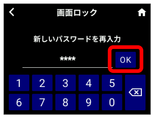 - パスワードを設定すると、画面ロックを解除する際にパスワードの入力画面が表示されるようになります。パスワードを入力して画面ロックを解除する手順については、「パスワードを入力して画面ロックを解除する」を参照してください。