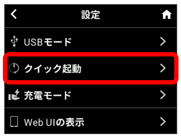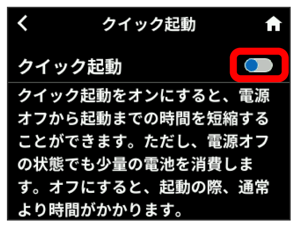 クイック起動をONにすることで、電源ON時の時間を短縮することができます。