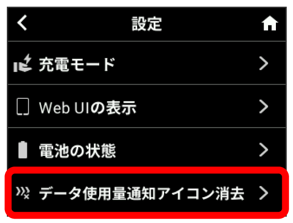 現在表示されているデータ通信量の通知アイコンを消去します。通知アイコンは個人で契約された場合のみ表示されます。