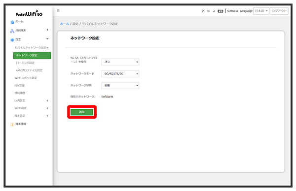 ネットワークモードを変更する