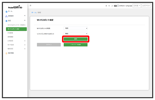 - お買い上げ時のWi-Fiスポットの利用はに設定されています。