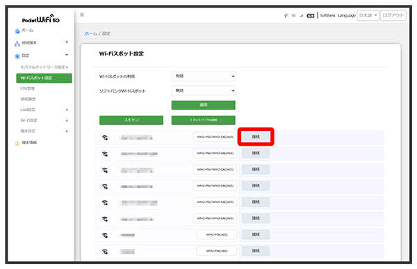 - をクリックすると、周囲にあるWi-Fiスポットのアクセスポイントを検索します。
