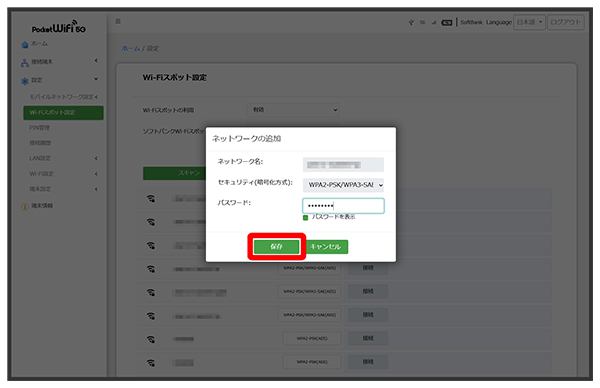 Wi-Fiスポットの接続情報を手動で設定して接続する
