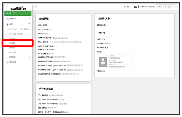 - LAN側の接続履歴は表示されません(Wi-Fi接続、USB接続、有線LAN接続)。