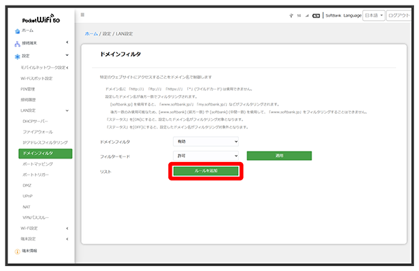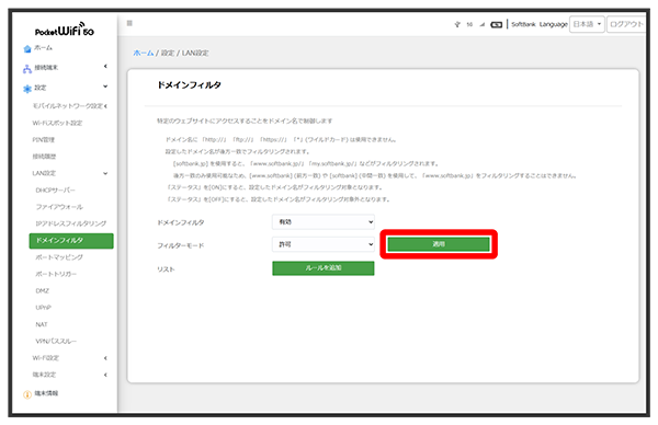 softbank.jpを使用すると、「www.softbank.jp/」「my.softbank.jp/」などがフィルタリングされます。