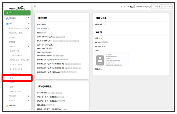 LAN内にある特定の端末を、他の端末から隔離されたDMZホストとして設定できます。ポート番号の設定をしなくても、Webサーバーを公開したりできるようになります。