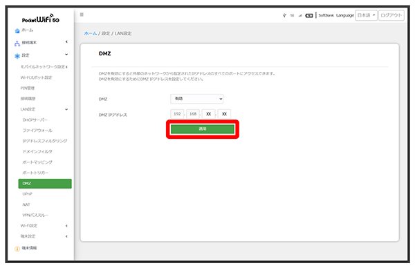 - 設定できるDMZ IPアドレスの範囲は、~です。