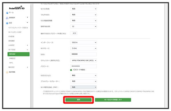 が表示されます。 - SSID Bの周波数帯を設定する場合は、あらかじめ「マルチSSID」をにしておいてください。