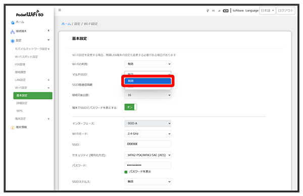 マルチSSID機能をONにする(SSID B)