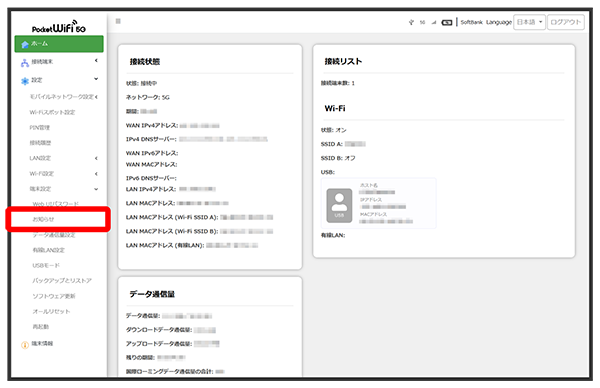 Pocket WiFi® 5G A503SH