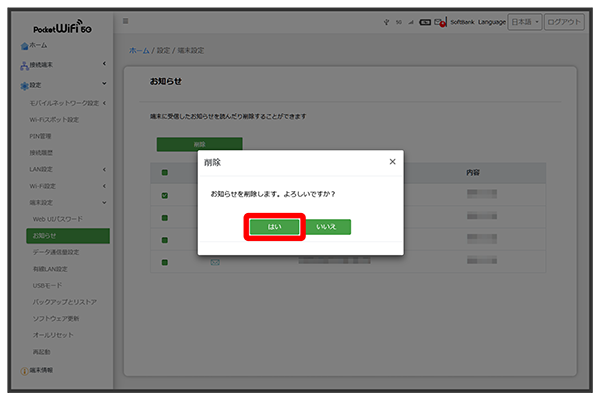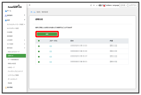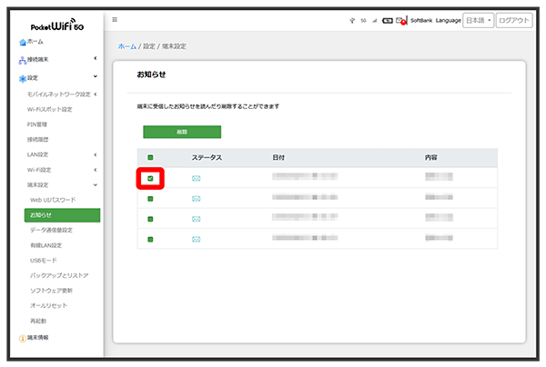 お知らせを選択して削除する