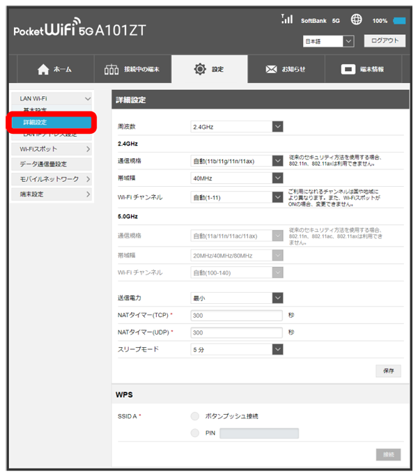 [パソコンから] LAN Wi-Fiの詳細設定を行う