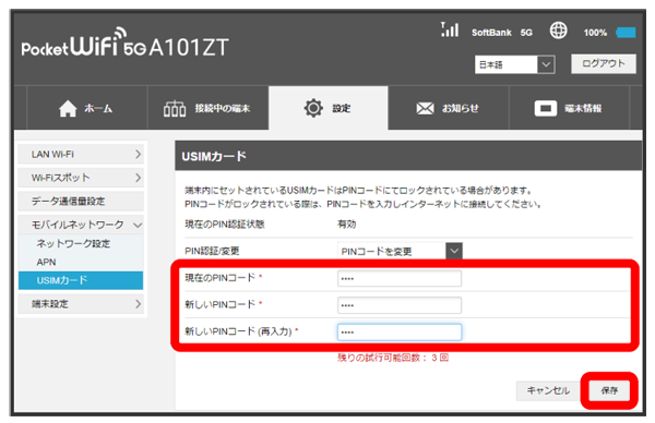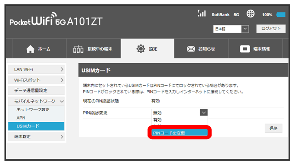 PINコードは、必要に応じて4~8桁のお好きな番号に変更できます。PINコードの変更は、PIN認証が有効に設定されているときにできます。