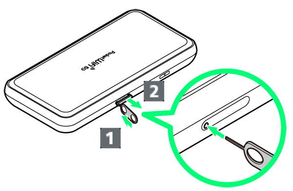 ディスプレイを下向きにして、SIMピン(試供品)をUSIMカードトレイの穴に挿し込み