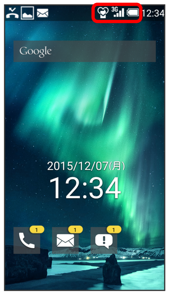 ステータスバーの右から表示されるマークには、次のようなものがあります。