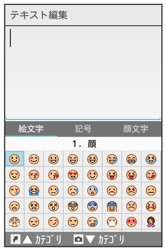絵文字/記号/顔文字の入力画面(履歴があるときは、入力履歴画面)が表示されます。