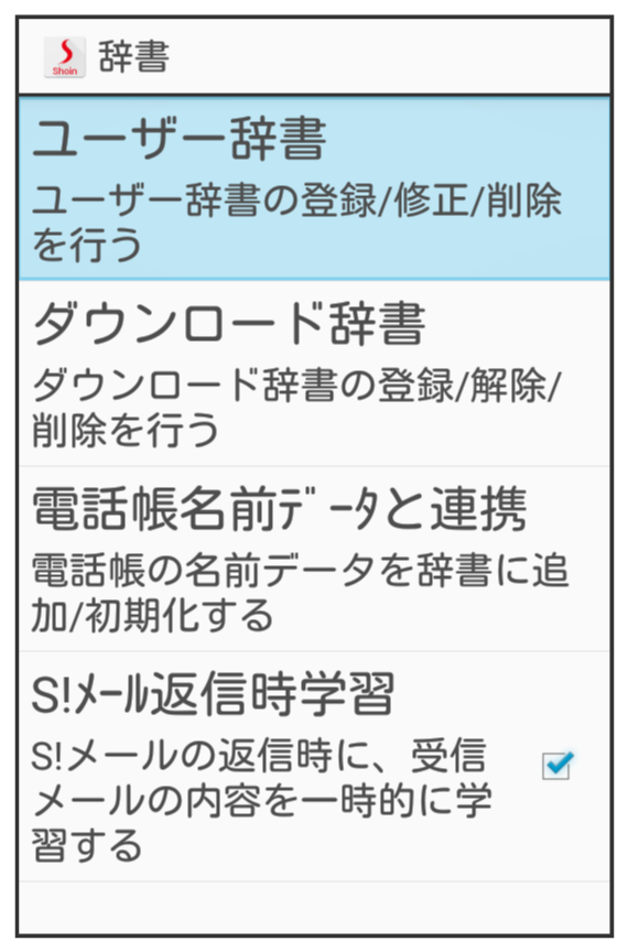 ユーザー辞書利用時の操作