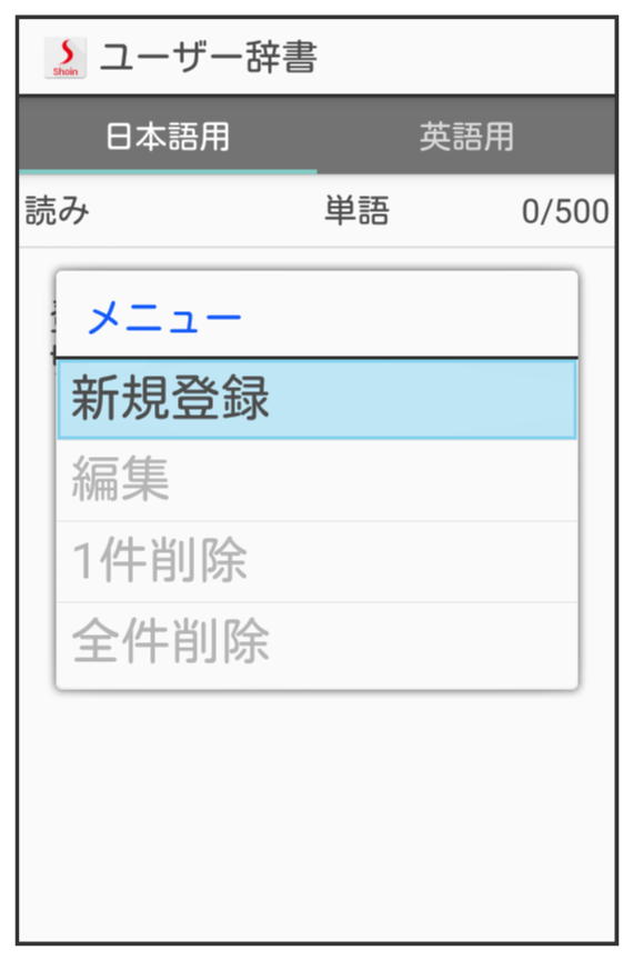 ユーザー辞書画面が表示されます。