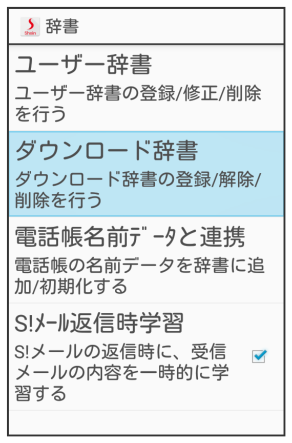 ダウンロード辞書画面が表示されます。